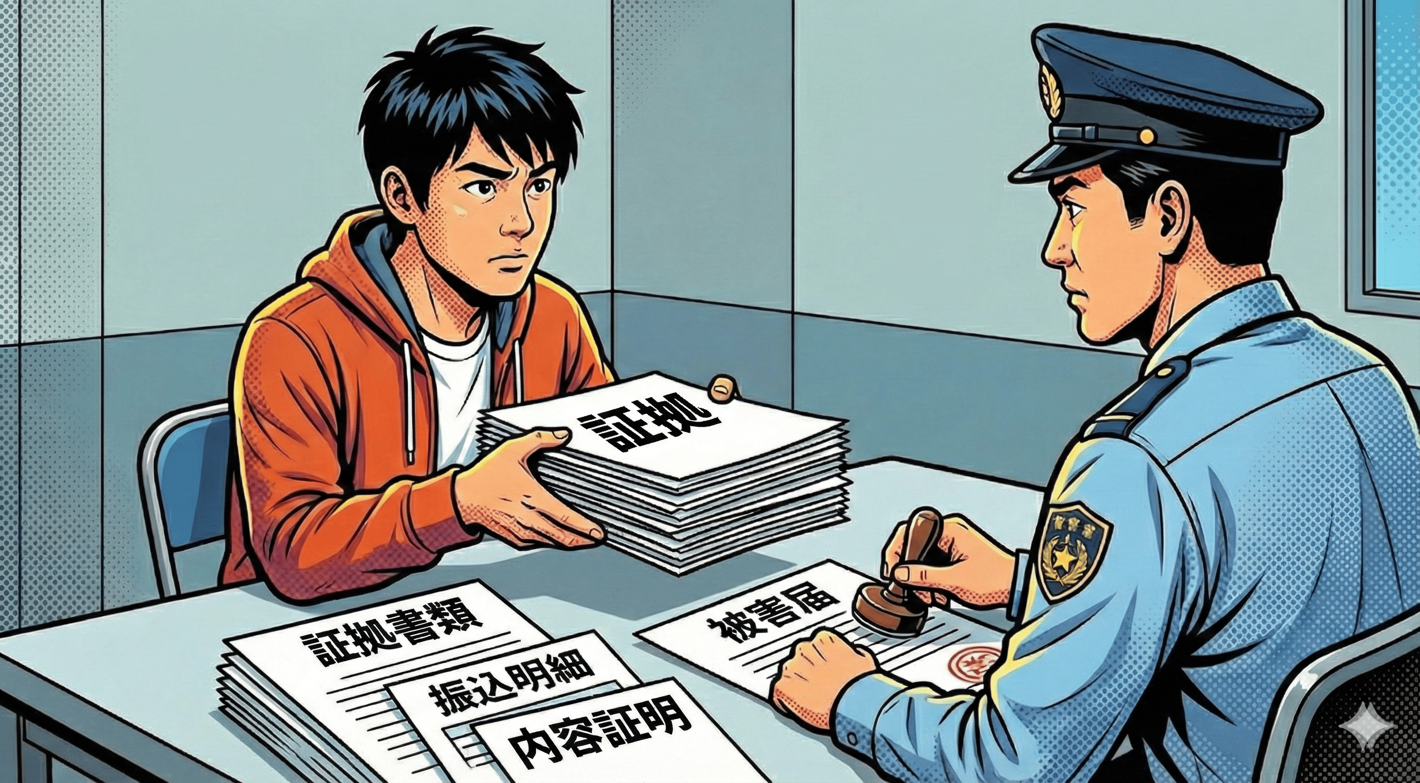 証拠が揃ったら、いよいよ刑事さんとの対面です。